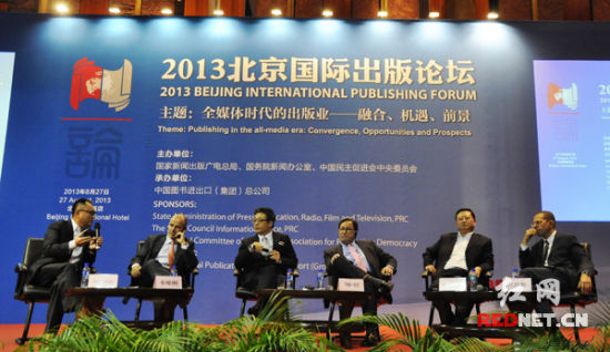 2013北京國際出版論壇開幕,中外知名出版機構負責人齊聚論壇,圍繞全媒體時代的出版業發展進行討論交流