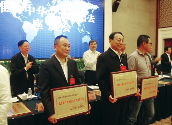 湖南出版投資控股集團(tuán)黨委書記、董事長(zhǎng),中南傳媒董事長(zhǎng)龔曙光(前左一)領(lǐng)獎(jiǎng)。