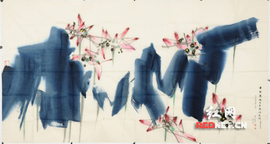 這幅16平尺的彩墨作品簡潔、大氣的用墨之中,蘊含著“月照洞庭波”的意境,體現了黃永玉高超的繪畫技巧。黃永玉自稱,從題材到手法都是以前沒有過的。