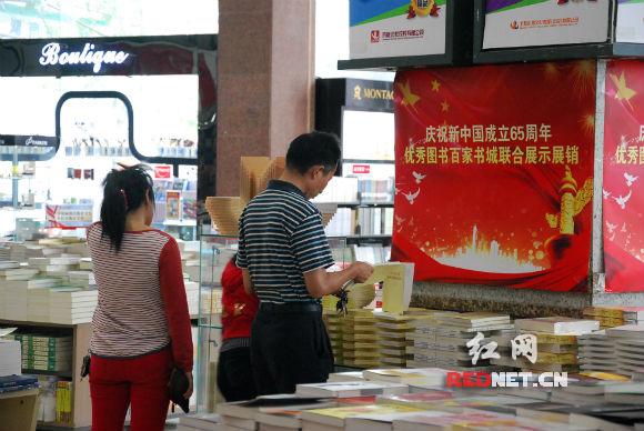 國慶長假期間,湖南新華書店延長了營業時間,以專臺專柜的形式開展慶祝新中國成立65周年優秀圖書聯合展示展銷活動,為祖國65周年華誕增添了一抹書香。